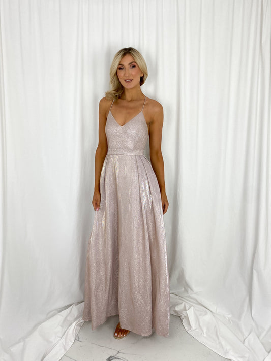 Savina Maxi Dress with Embroidered Top - Light Pink