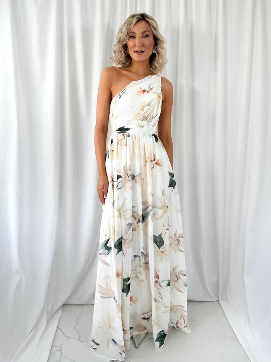 Ashley Maxi Dress with Draped One Shoulder Top - White