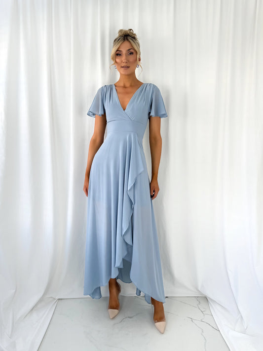 Gaya Ruffle Dress - Dusty Blue