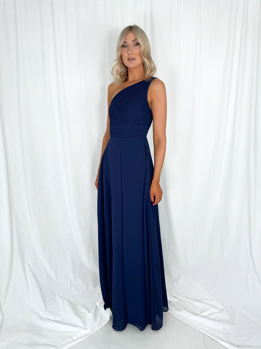 Tracy One Shoulder Draped Top Maxi Dress - Navy
