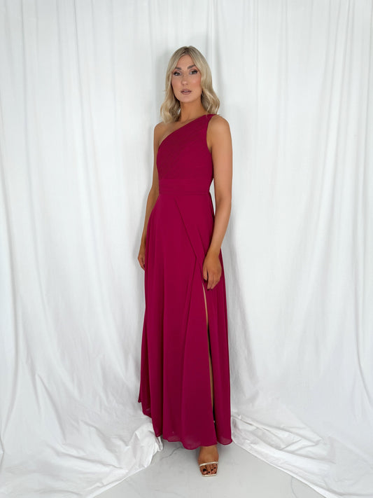 Tracy One Shoulder Draped Top Maxi Dress - Dark Fuchsia