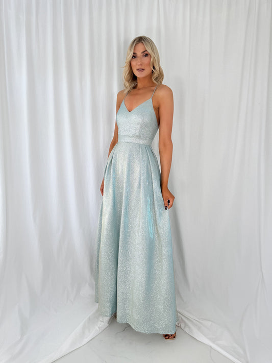 Salma Embroidered Off The Shoulder Midi Dress - Light Blue