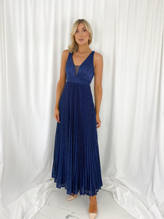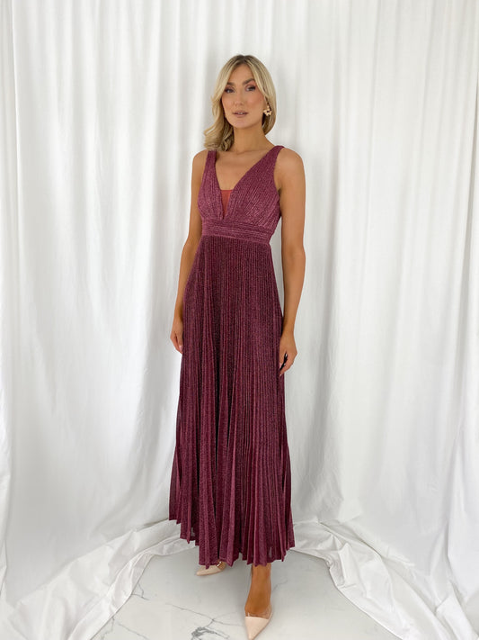 Joely Pleated Maxi Glitter Dress - Old Rose