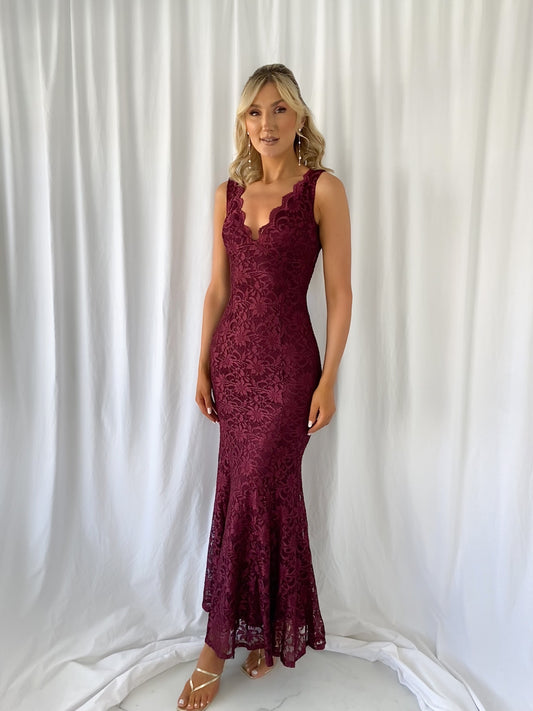 Raquel Embroidered Open Back Dress - Wine