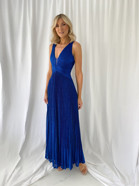 Madisson Pleated Maxi Glitter Dress - Royal Blue