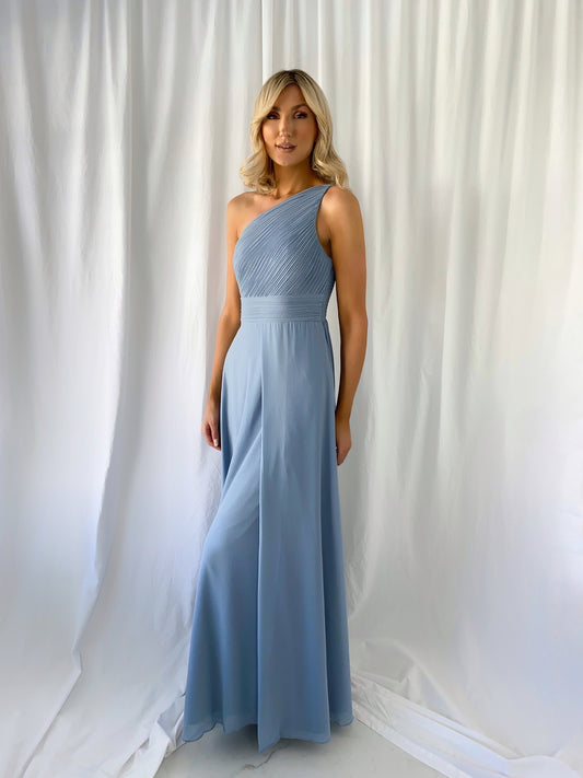 Tracy One Shoulder Draped Top Maxi Dress - Light Blue