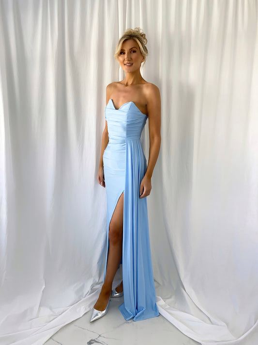 Madisson Pleated Maxi Glitter Dress - Sky Blue