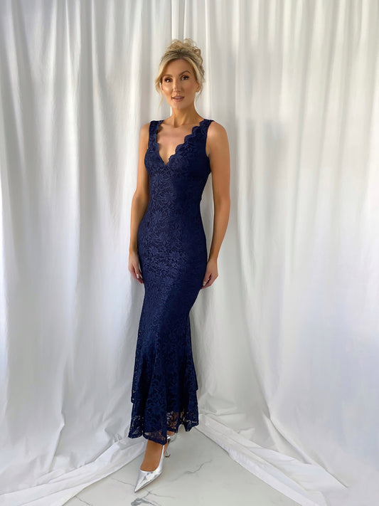 Raquel Embroidered Open Back Dress - Navy