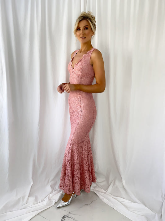 Madisson Pleated Maxi Glitter Dress - Rose