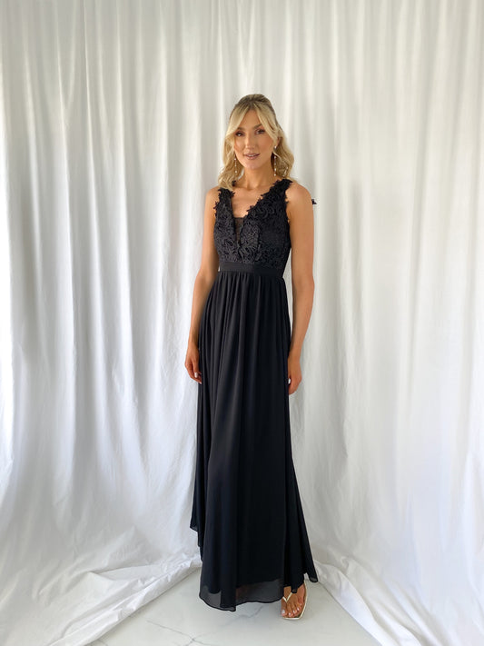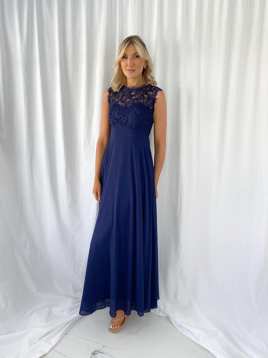 Telma Broderie Top Pleated Maxi Dress - Royal Blue