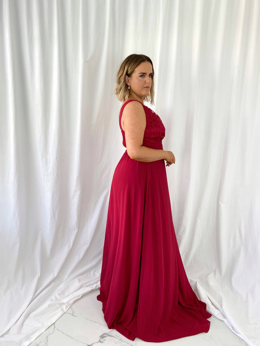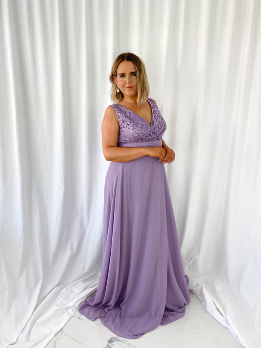 Savina Maxi Dress with Embroidered Top - Aubergine
