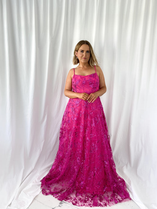 Lena Embroidered Sheer Maxi Dress - Fuchsia