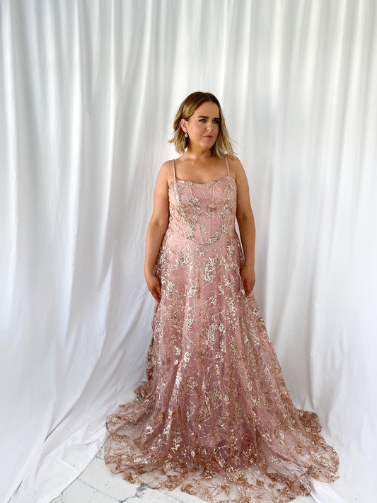 Lena Embroidered Sheer Maxi Dress - Old Rose