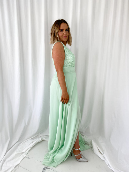 Darlene Maxi Dress with Open Slit - Sky Blue