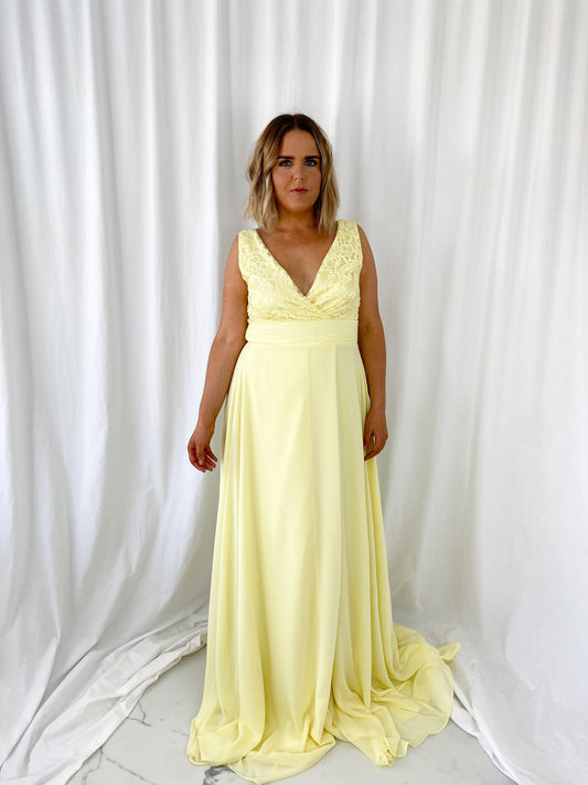 Darlene Maxi Dress with Open Slit - Light Yellow
