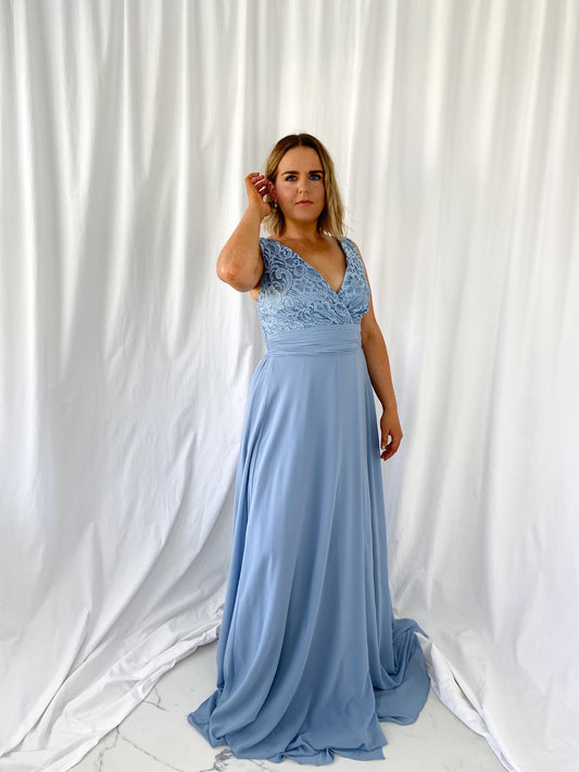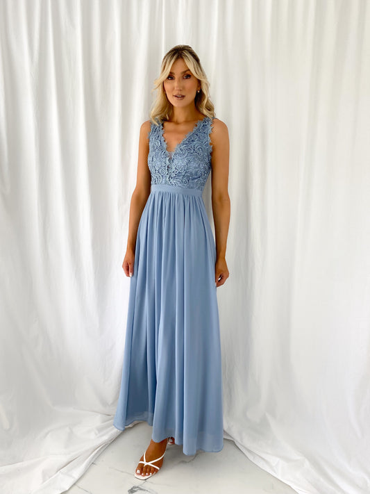 Darlene Maxi Dress with Open Slit - Dusty Blue
