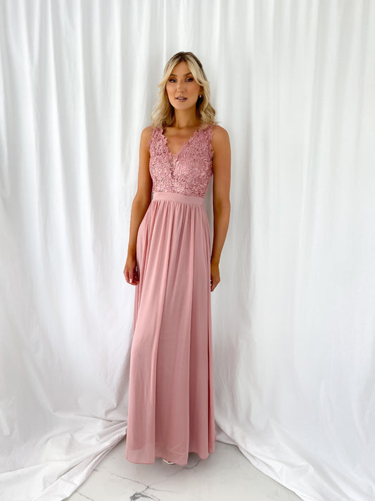 Telma Broderie Top Pleated Maxi Dress - Old Rose