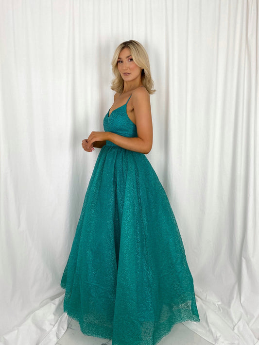 Annabelle Maxi Bright Dress with Chains Over The Shoulder - Light Green